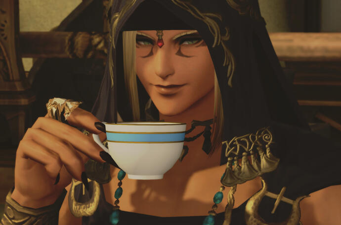Not much is known about Jaskan's past but at least this much has been uncovered...His family comes from Thavnair but he was born and spent most of his childhood in Kugane, after his parents traveled with a circus troupe to escape their home (reasons unknown). As soon as he was old enough, he joined his family in the circus trade as a Knife Thrower (particularly skilled in the "Impalement Arts").After a strict upbringing that left him with various useful skills that he still uses today, Jaskan left home, and Kugane, for the Azim Steppe. There he found himself surrounded by Xaela like himself and he shed his family name in exchange for joining the Adarkim tribe. He took on their name as his own and left behind the family name that haunted him. While with the tribe, they helped him harness his anger and aggression into combat skills that he uses for his current occupation today. At the same time, the calm and open of the Steppe helped him to control his emotions and keep a level head in any situation.All of this leading him to a life of contract/mercenary work that affords him the ability to travel where and when he pleases, never staying too long in one place. He's traversed many regions, been contracted by all sorts, but now he's locked in a job with an unknown end.